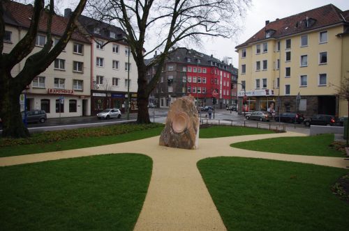 This 7 ton marble sculpture is the center of an open space I designed in front of the Apostles Church in Essen: as an ancient symbol of man, five natural pathways lead toward the sculpture. In the center of the sculpture itself, I created an opening at heart level in order to invite everybody to approach and respond to it by opening their own hearts in turn. marble, 2011