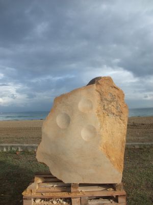 Bei einem Symposium in Yalova bei Istanbul, Türkei, entstand aus ockerfarbenem Marmor diese Skulptur, die mit ihren 3 kreisförmigen Vertiefungen Bezug nimmt auf das alte Symbol der 3 Schalen oder Näpfchen: Wachstum, Blüte und Wandlung aller Kräfte.