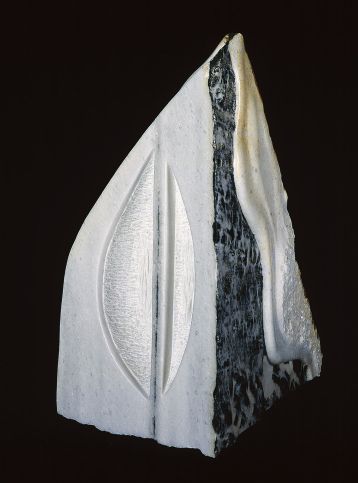 Fließende, weiche Formen voller Sinnlichkeit neben kantigen, verletzenden und verletzten, roh gebrochenen Seiten strömen zu lassen war mein Anliegen bei dieser Skulptur. Dazu habe ich die farbigen Äderungen des Marmors als starke Kontraste und Zeichnungen genutzt.